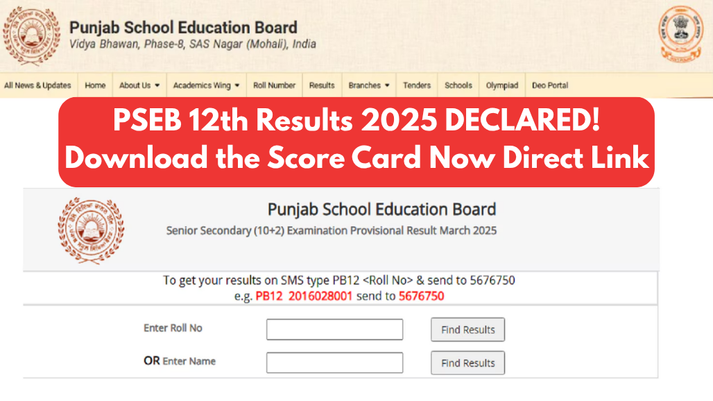 Punjab Board Class 12th Results 2025 Declared: Download PSEB 12th Marksheet, Direct Link